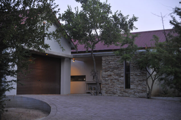 The plan of the house was inspired by the Herbert Jacobs House of Frank Loyd Wright, 1936, which was an early, but also a fine example of his Usonion Projects. The house was designed in an L-Shape, with the living- and dining room as well as kitchen accommodated via the one wing and the bedrooms within the scope of the other. Both wings open up to a communal outside space which was an extension of the house itself. The services such as geysers of both the upper and lower bathrooms are clad with curved corrugated iron sheets as to symbolize the water reservoirs and dams typically found in the Free State landscape. These organic shapes are enhanced by the strong light quality which is a characteristic of the classical landscape in which the building is located. The position of the house on the plot turns its back to the street and really opens up to an ever changing palate of colours from the forest on the North Eastern side. The orientation provides ample shade during summer and really catches all the rays of sunlight from early morning to sunset during the cold winter months.